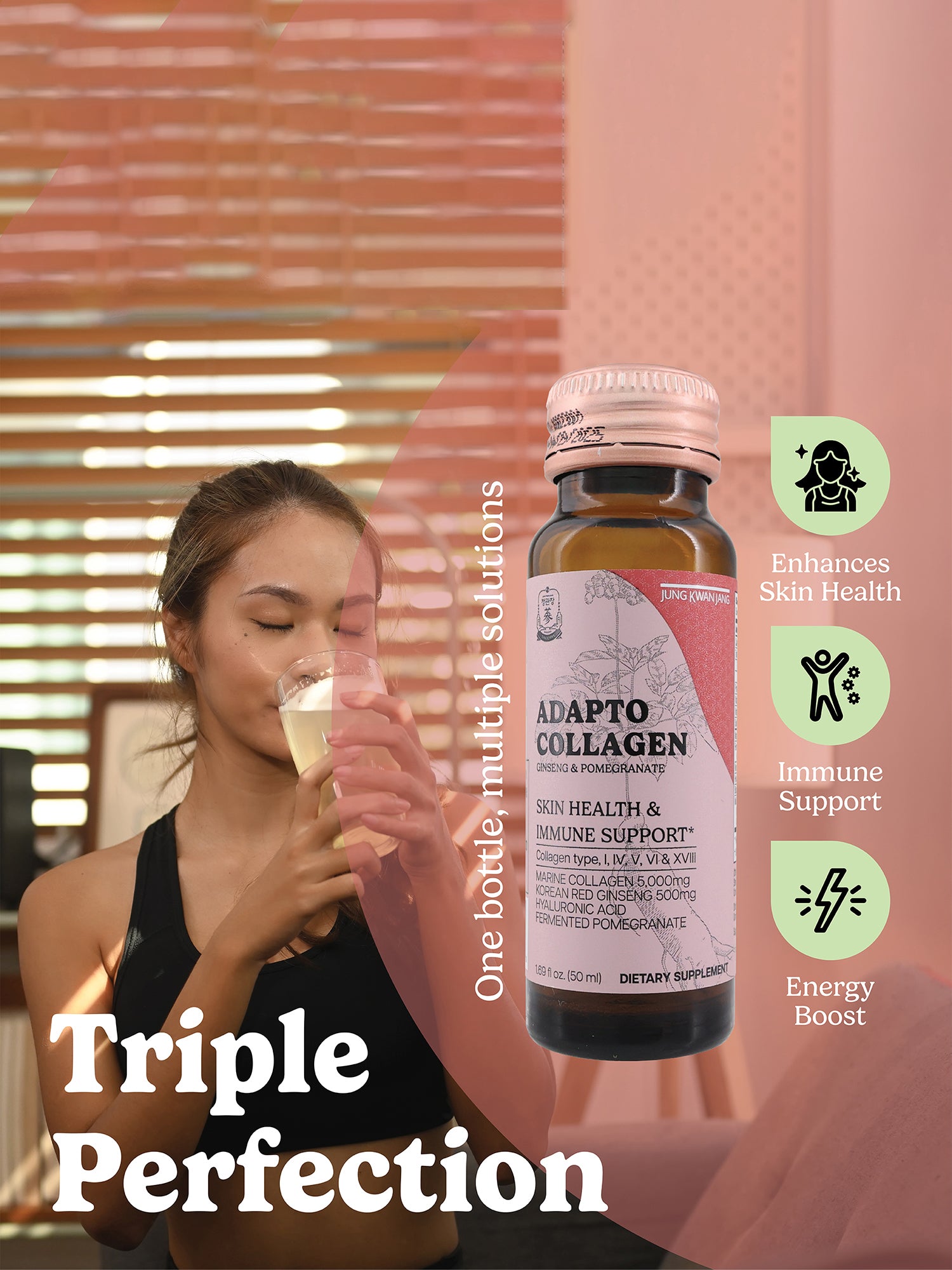 Our Adapto Collagen Skin Health & Immune Support is your companion for achieving a glowing complexion and enhancing your immune system.