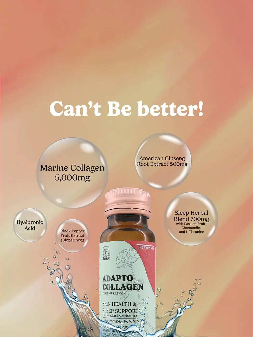 Unlock your skin's youthful potential and enhance your well-being with the Adapto Collagen line. Tailored for individuals over 25 who seek to combat the signs of aging while promoting overall health, these specialized products bring together top-tier ingredients for radiant skin, robust immunity, and restorative sleep.