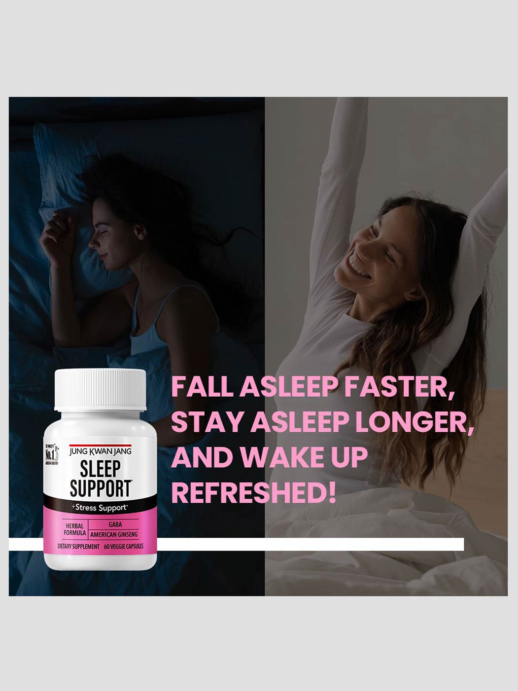 Our Sleep Support Combo, which contains Gaba Complex and American Ginseng, is designed to help you achieve restful sleep and feel refreshed and rejuvenated throughout the day. With JungKwanJang Sleep, you can finally say goodbye to sleepless nights and groggy mornings.