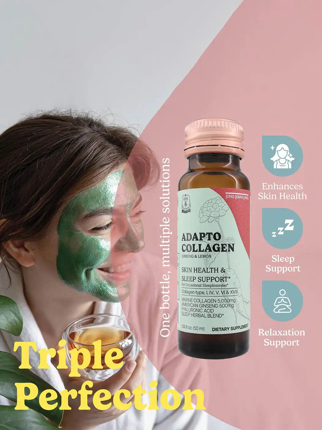 Transforma tu día con nuestro shot de colágeno Adapto para la salud de la piel y el sistema inmunológico. Abraza una apariencia más saludable y juvenil mientras apoyas el bienestar general. ¡Pruébalo hoy y descubre el impacto positivo que puede tener en tu vida!