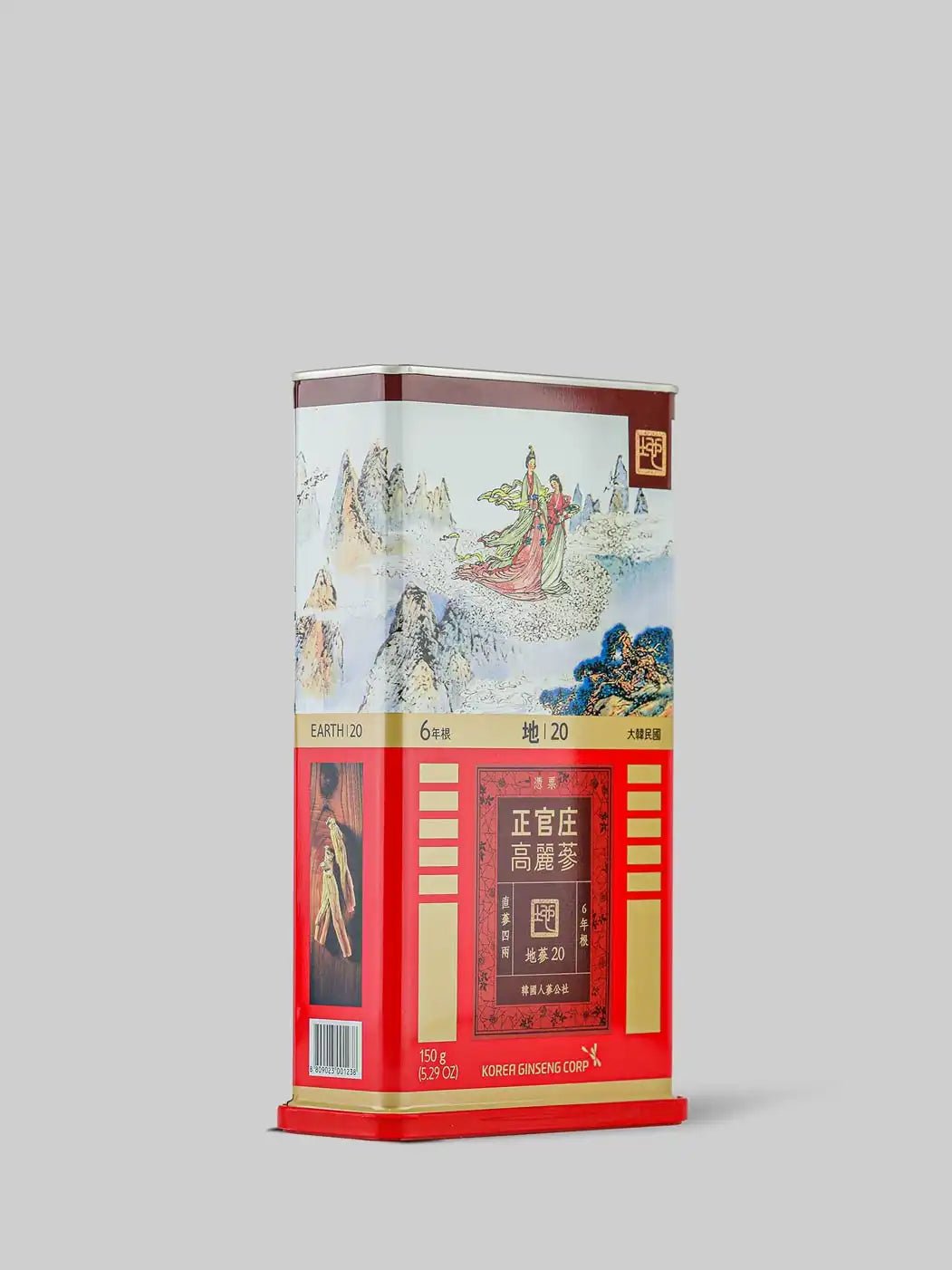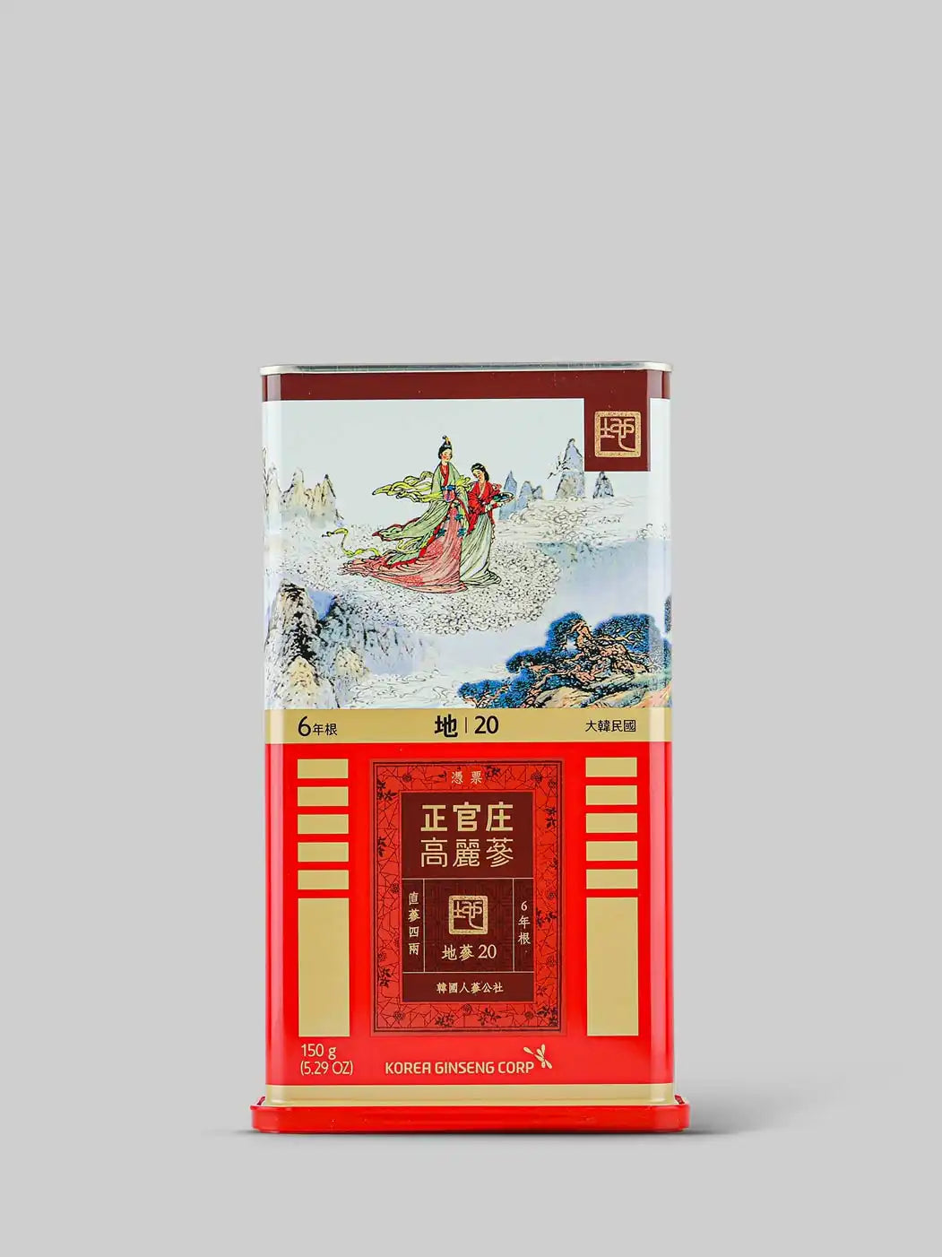 06. Raíz y RodajasLa Corporación de Ginseng de Corea es reconocida como la marca número 1 de ginseng en el mundo. El Ginseng Rojo Coreano de Grado Tierra es el segundo mejor nivel de Ginseng Rojo Coreano. Estas raíces de alta calidad son ricas en ginsenósidos, que son conocidos por promover la salud y la vitalidad. Las raíces se clasifican según su estructura interna, forma, color y superficie. ¡Consigue tu raíz de Ginseng de Grado Tierra hoy!