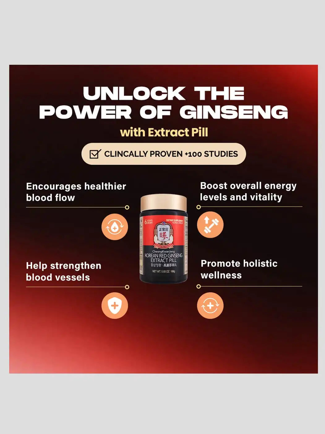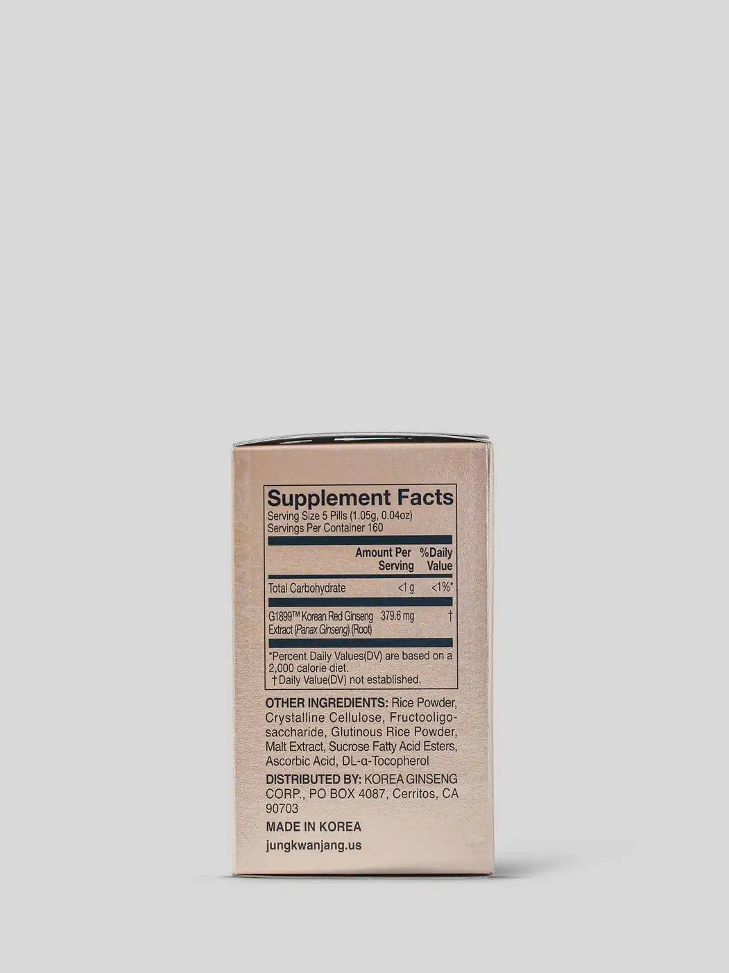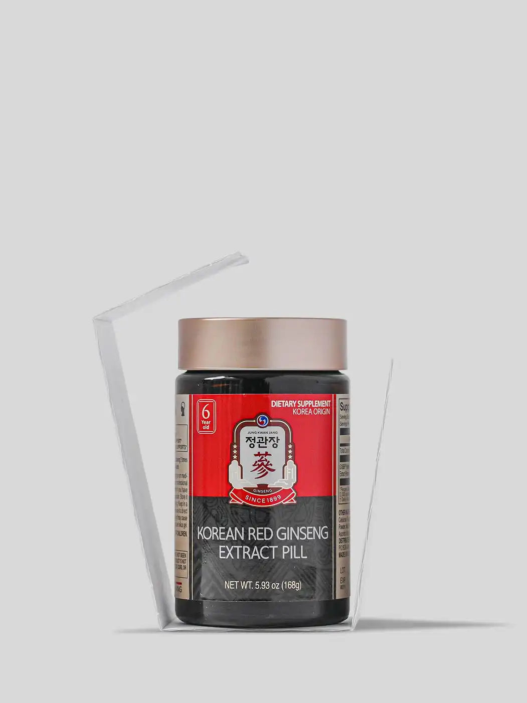 Las píldoras de extracto de CheongKwanJang están hechas de nuestro mundialmente famoso Extracto de ginseng rojo coreano mientras que otras empresas fabricarán sus pastillas con ginseng en polvo. No es lo mismo 400mg de ginseng en polvo que 400mg de nuestro extracto de ginseng. El extracto de ginseng CheongKwanJang está concentrado y aumenta la eficacia del ginseng hasta 4 veces. Nuestros 120 años de experiencia e investigación han demostrado que el extracto es el método más eficaz para obtener los mayores beneficios del ginseng y para que el cuerpo absorba sus nutrientes.