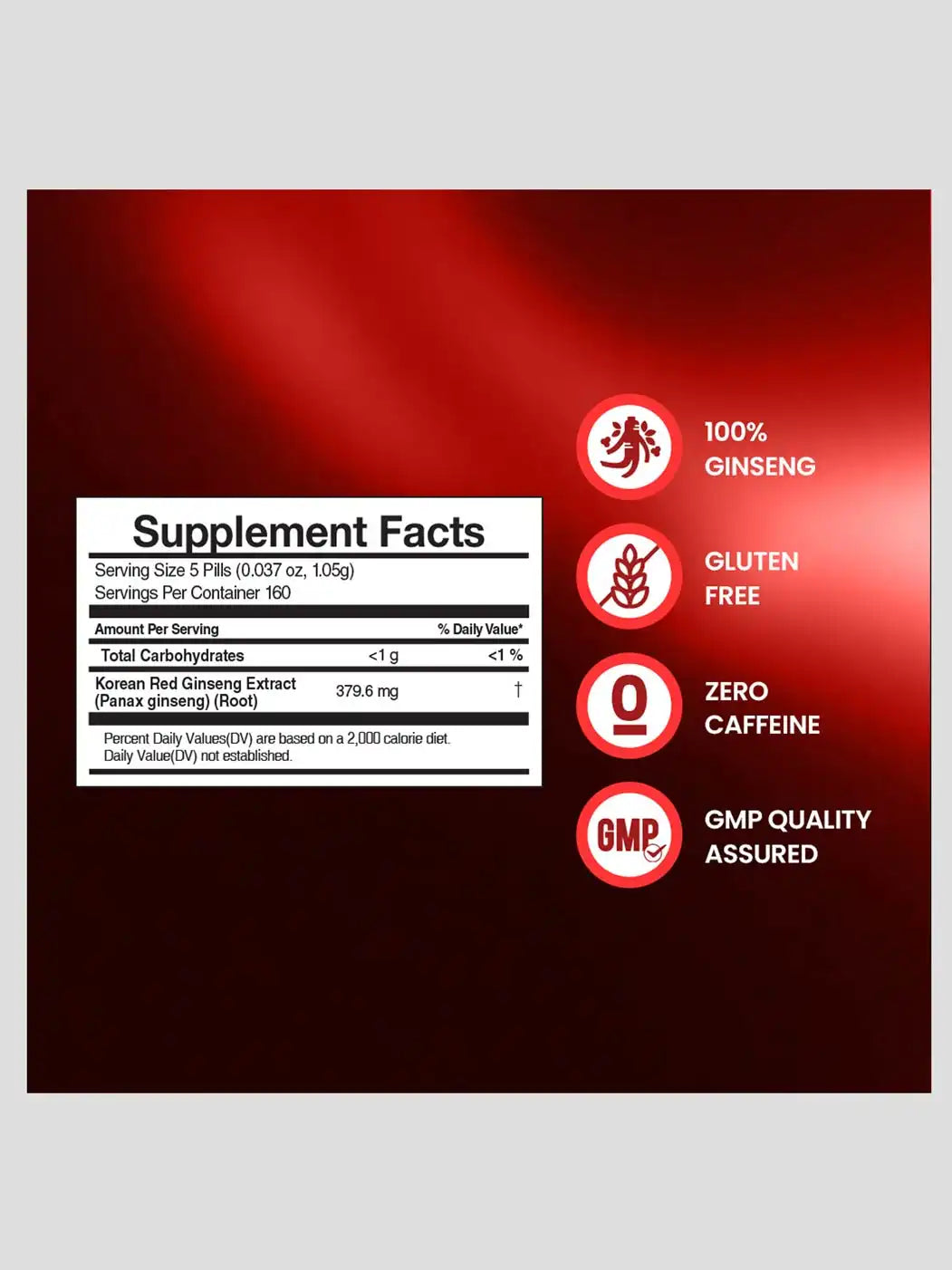 Pruebe las píldoras de extracto de ginseng para aumentar su energía. No contiene otros estimulantes ni cafeína. El ginseng es uno de los suplementos a base de hierbas más populares del mundo y ahora está disponible en este práctico suplemento de extracto de hierbas. El extracto de ginseng es un potente suplemento que ayuda a aliviar el estrés, estimular el sistema inmunológico, promover una circulación sanguínea saludable, ayudar a mantener una libido saludable y más.