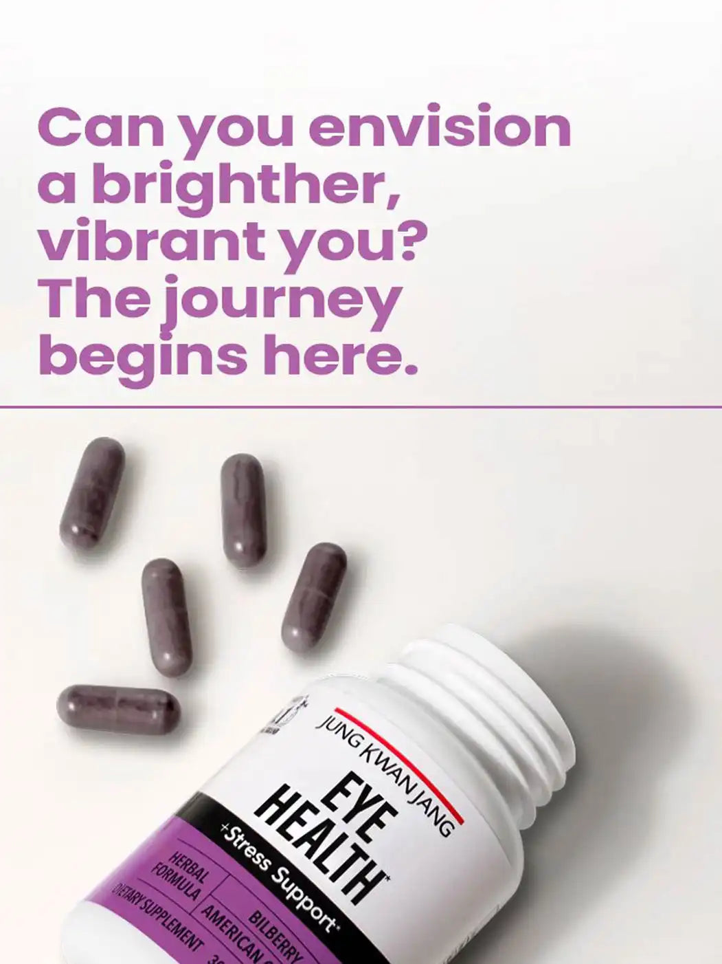 Apoya la salud de tus ojos, reduce la fatiga ocular y promueve la salud cognitiva y intestinal en general con JungKwanJang Eye Health. Comienza tu camino hacia una visión más clara, menos estrés ocular y ojos bien nutridos.