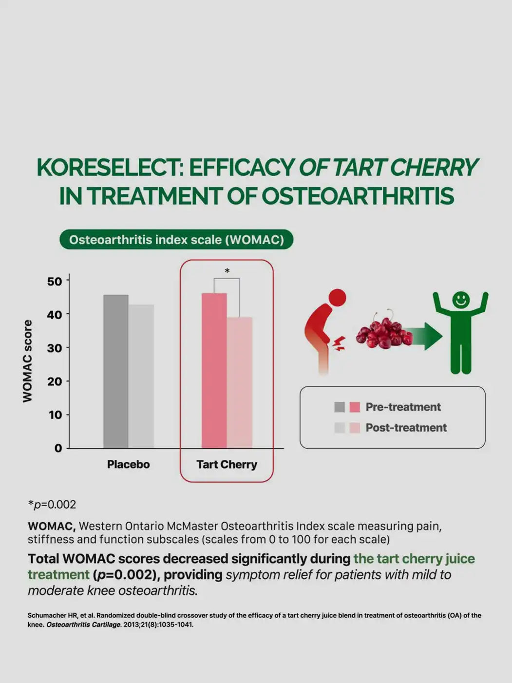 Hecho con ingredientes de alta calidad, Koreselect Tart Cherry con OptiMSM y American Ginseng es una manera segura y efectiva de apoyar la salud de sus articulaciones. Ya sea que sea un atleta que busca mantenerse en plena forma o un adulto mayor que busca aliviar el dolor en las articulaciones, Koreselect es el complemento perfecto para usted. ¡Pruébelo hoy y experimente los beneficios de una salud articular óptima!