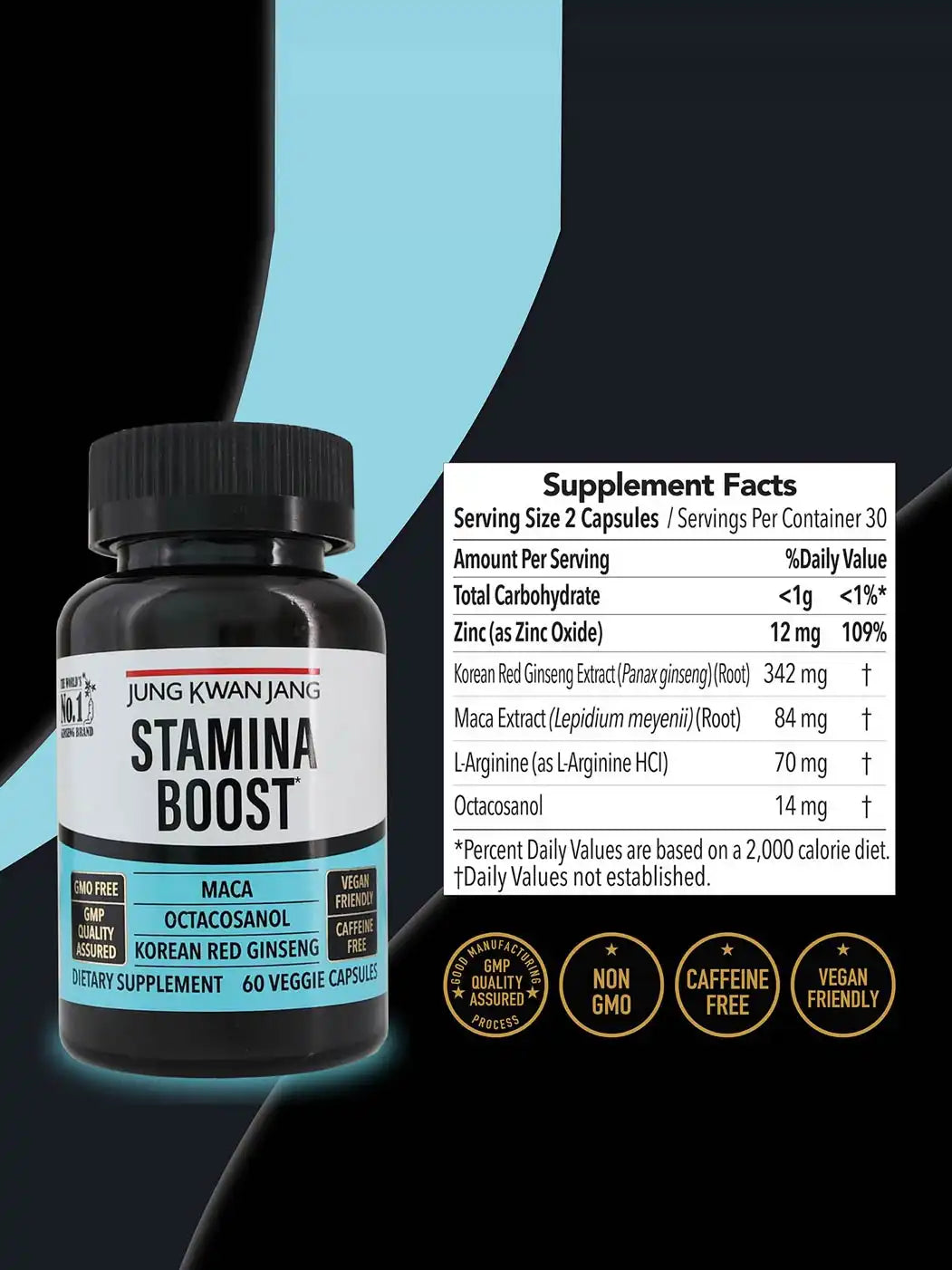 पुरुषों को कम सहनशक्ति के स्तर से संतुष्ट होने की जरूरत नहीं है। JungKwanJang स्टैमिना एक प्राकृतिक विकल्प है जो रसायनों के अवांछित दुष्प्रभावों के बिना पुरुषों के स्वस्थ प्रदर्शन का समर्थन करता है। सभी पौधों पर आधारित सामग्रियों और कोरियाई जिनसेंग से निर्मित, जुंगक्वानजंग स्टैमिना आपकी प्रतिरक्षा प्रणाली का समर्थन करते हुए स्वस्थ प्रदर्शन और परिसंचरण को बढ़ावा देने में मदद करेगा।