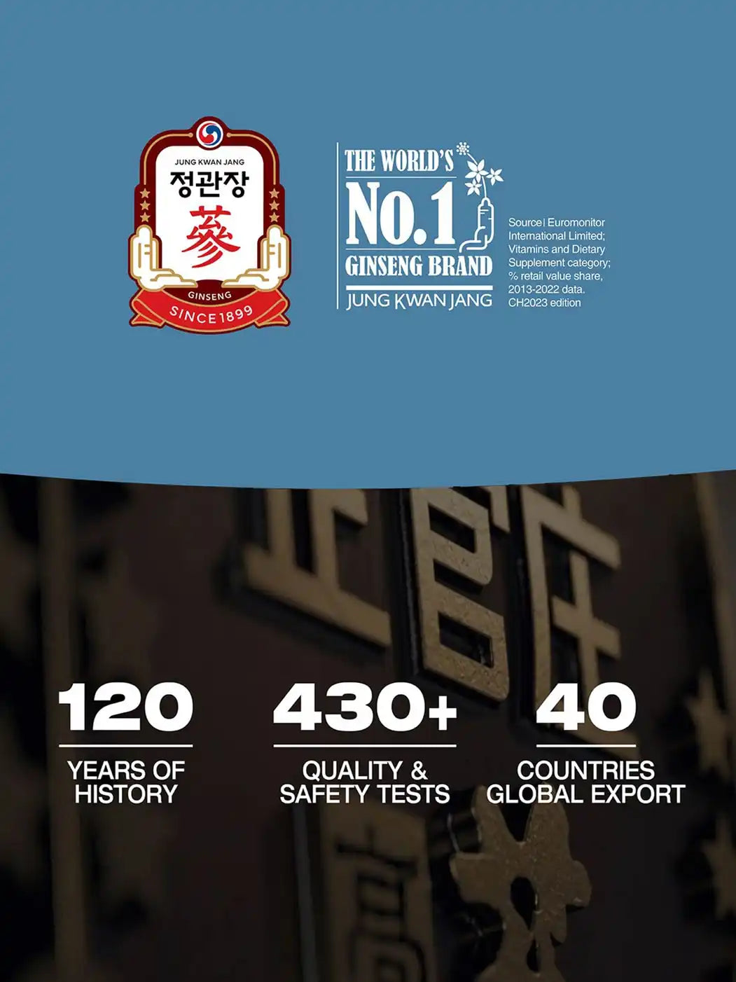 Renowned worldwide, Korea Ginseng Corporation(KGC), with its subsidiary lines JungKwanJang and Everytime, is the #1 brand of ginseng, with over 120 years of horticultural and scientific expertise.