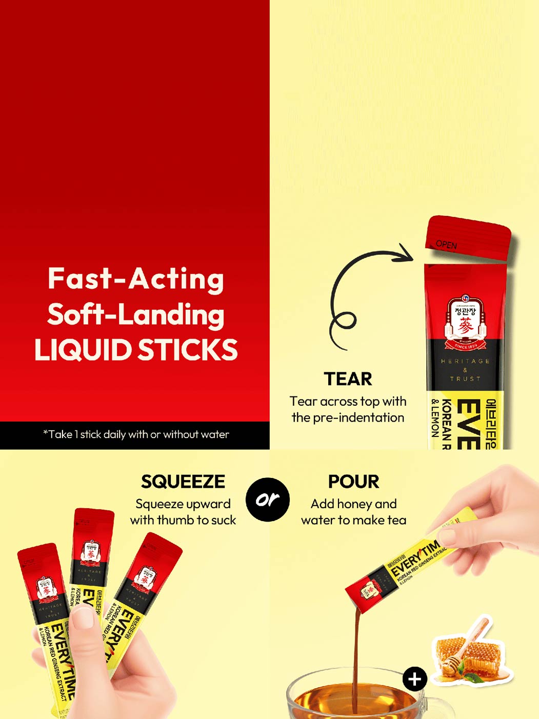 कोरियाई रेड जिनसेंग की शक्ति का अनुभव करें एक स्वादिष्ट और उपयोग में आसान फॉर्मूला में—हर घूंट के साथ अपने शरीर और मन को ऊर्जा दें!