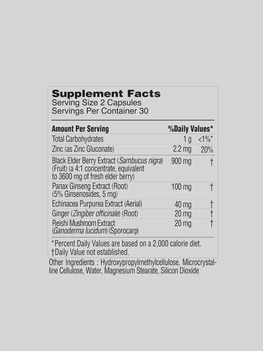 Elderberry, Panax Ginseng, Echinacea, Ginger, Reishi Mushroom, Zinc