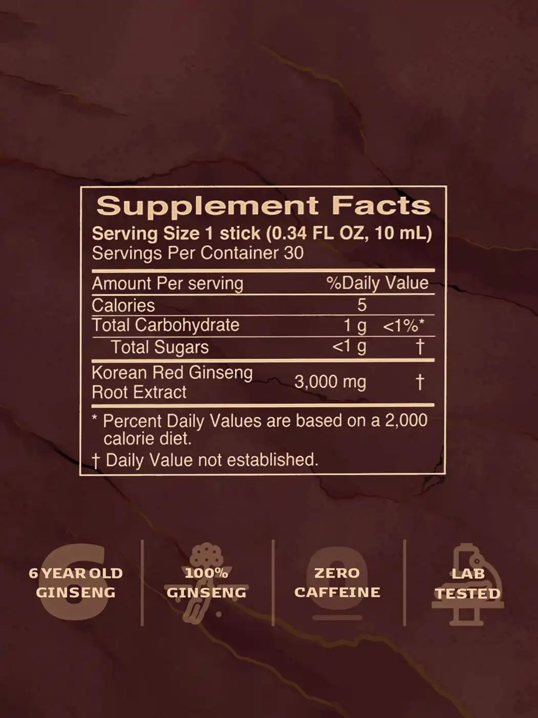 This convenient liquid stick delivers the pure energy and health benefits of Korean Red Ginseng anytime, anywhere — without additives, caffeine, or compromise.