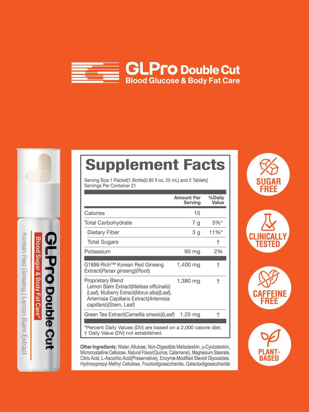 Take the contents of 1 Daily Pack (1 liquid and 2 tablets). Shake the bottle well before consuming. GLPro can be taken at any time of the day, with or without food in your daytime routine.