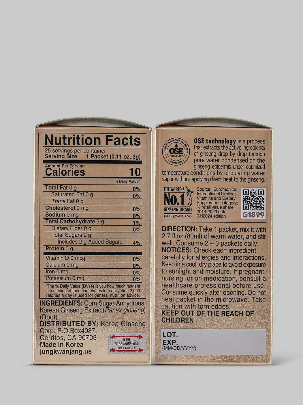 Each of our JungKwanJang products is certified by the Republic of Korea’s Ministry of Food and Science to feature only premium ginseng extract, from the roots of plants that have been allowed to mature for the full six years required for optimal results.