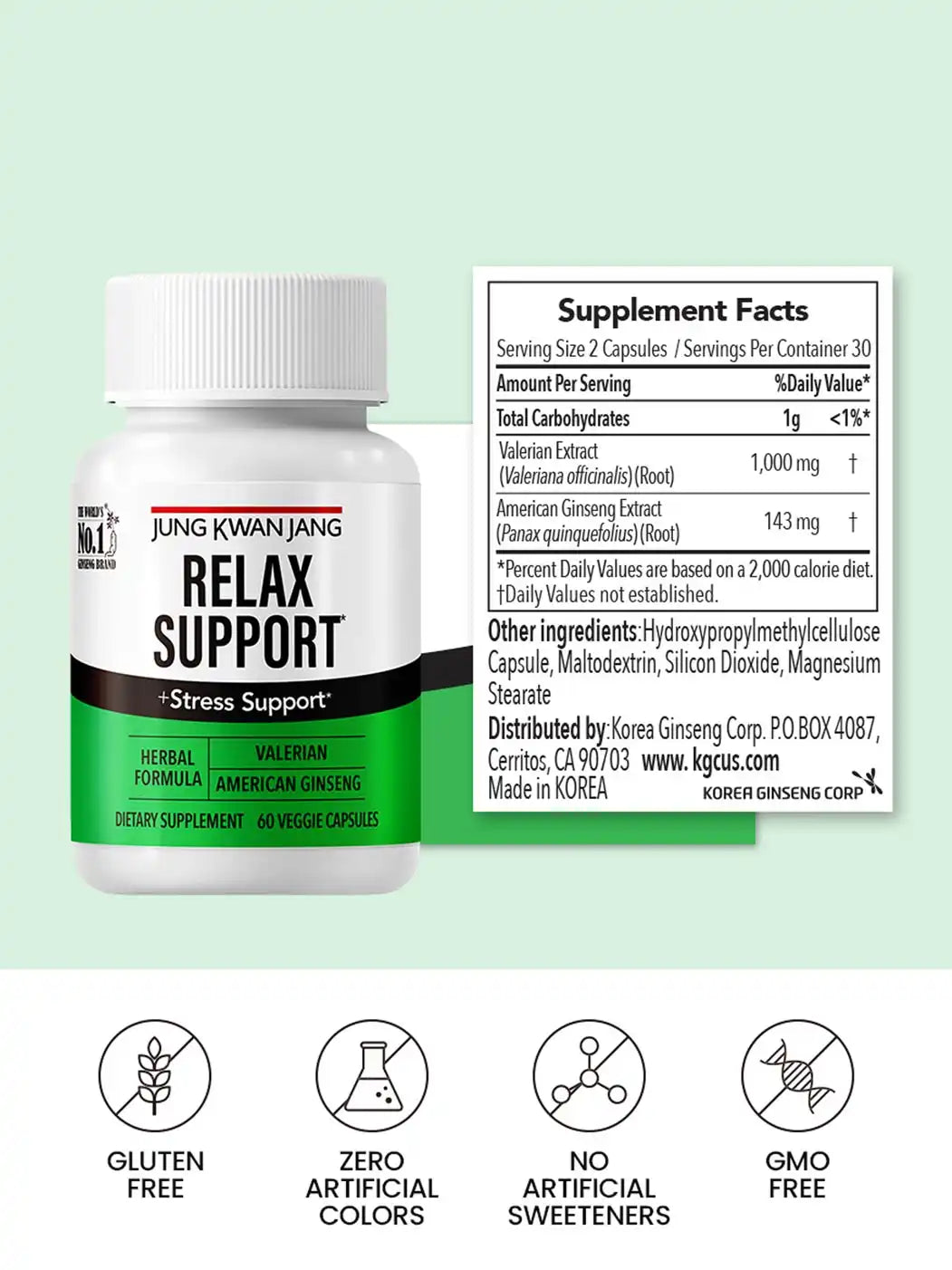 JungKwanJang Relax with Valerian and American Ginseng - the perfect supplement for individuals in their who feel stressed out and are in need of some relaxation and mental detox.