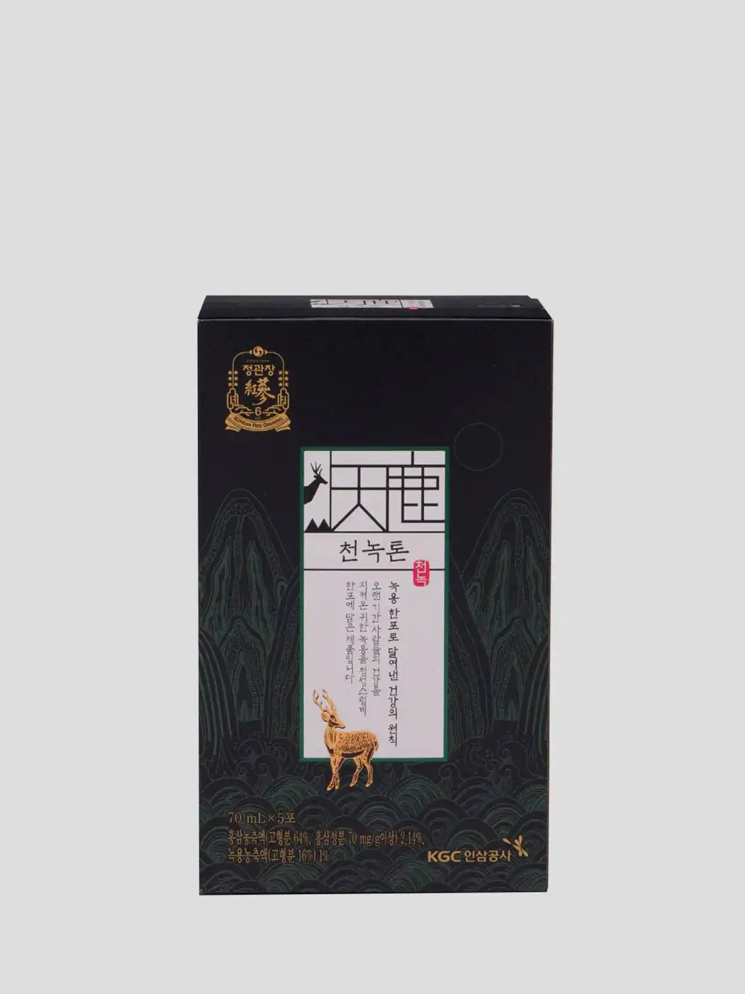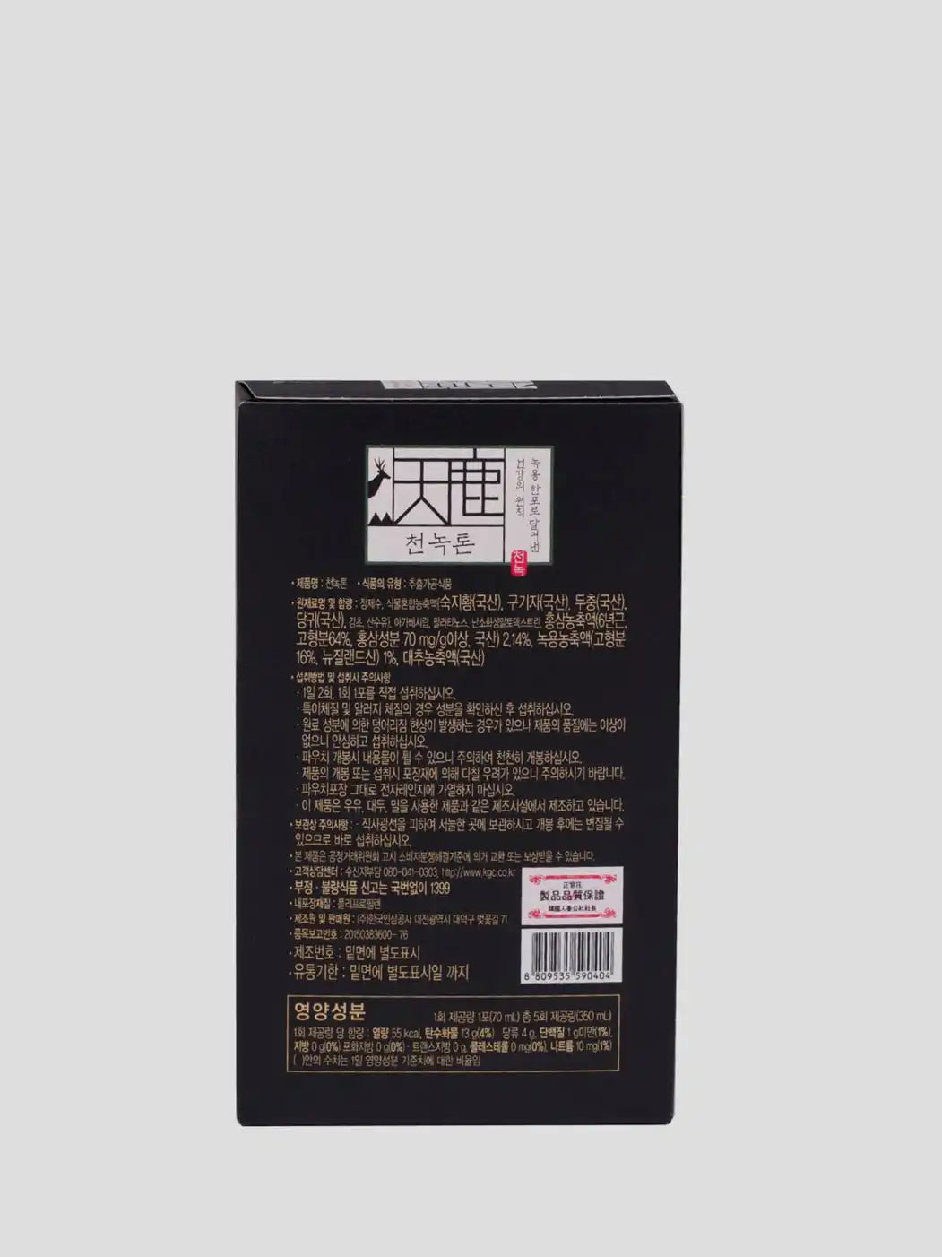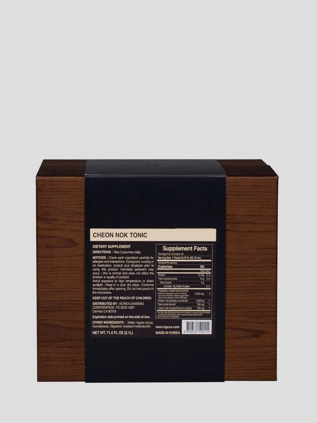 Esta bebida saudável é incrível! Tônica CheonNok é carregado com ginseng vermelho e veludo de chifre de veado, que são os dois ingredientes mais importantes para a longevidade da vida. O ginseng vermelho é a erva apreciada por toda a Coreia porque é conhecida por apoiar a saúde, combater a fadiga e ajudar com energia. O veludo de chifre de veado é rico em hormônios e minerais essenciais para a saúde e vitalidade. Use-o para ajudar a acelerar o metabolismo, apoiar a fadiga mental e fortalecer o sistema imunológico. Tônica CheonNok também é uma bebida muito prática e que pode ser consumida com facilidade.