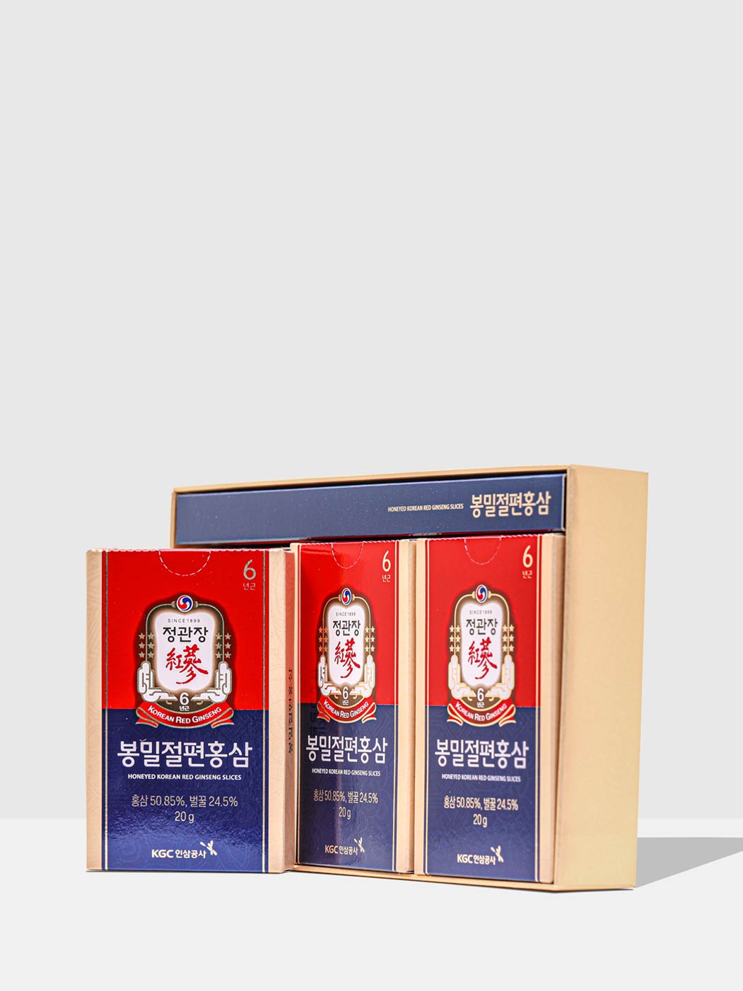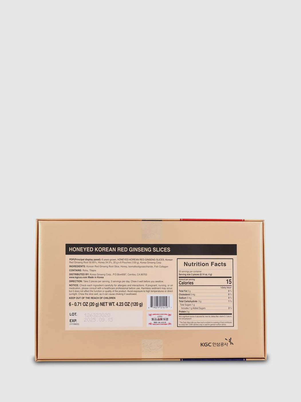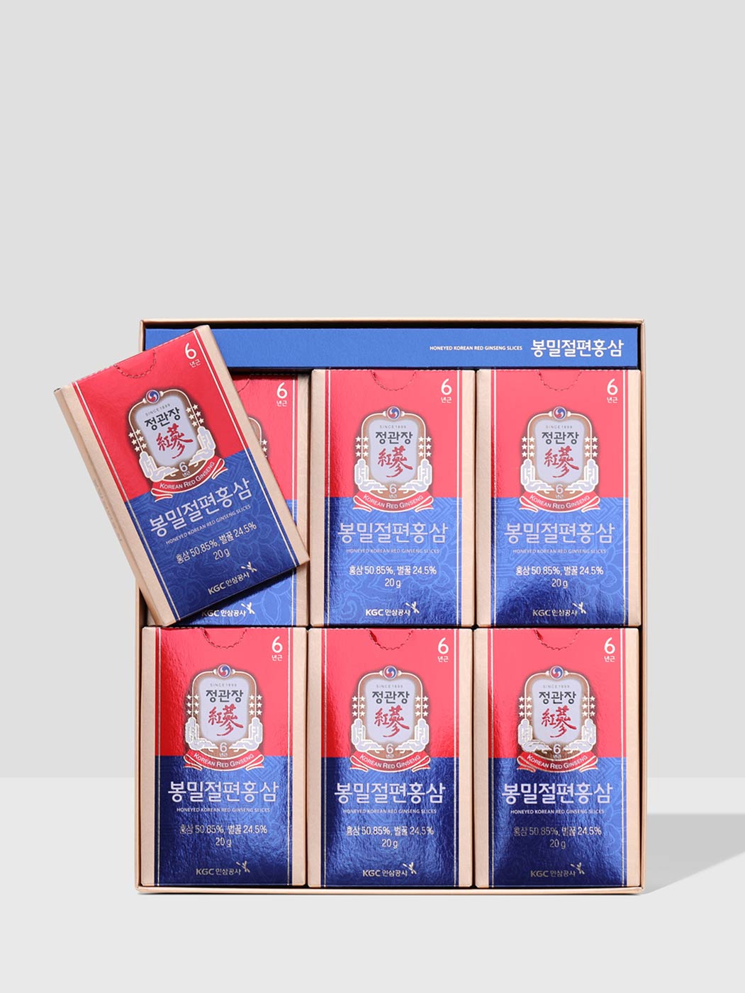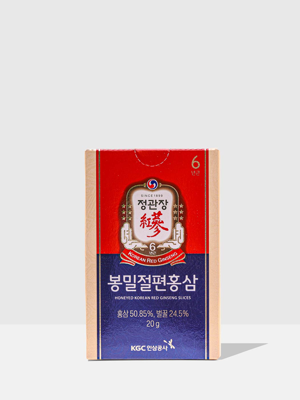 ** O 6 no topo da caixa significa que ela é feita de Ginseng Vermelho Coreano cultivado há 6 anos.