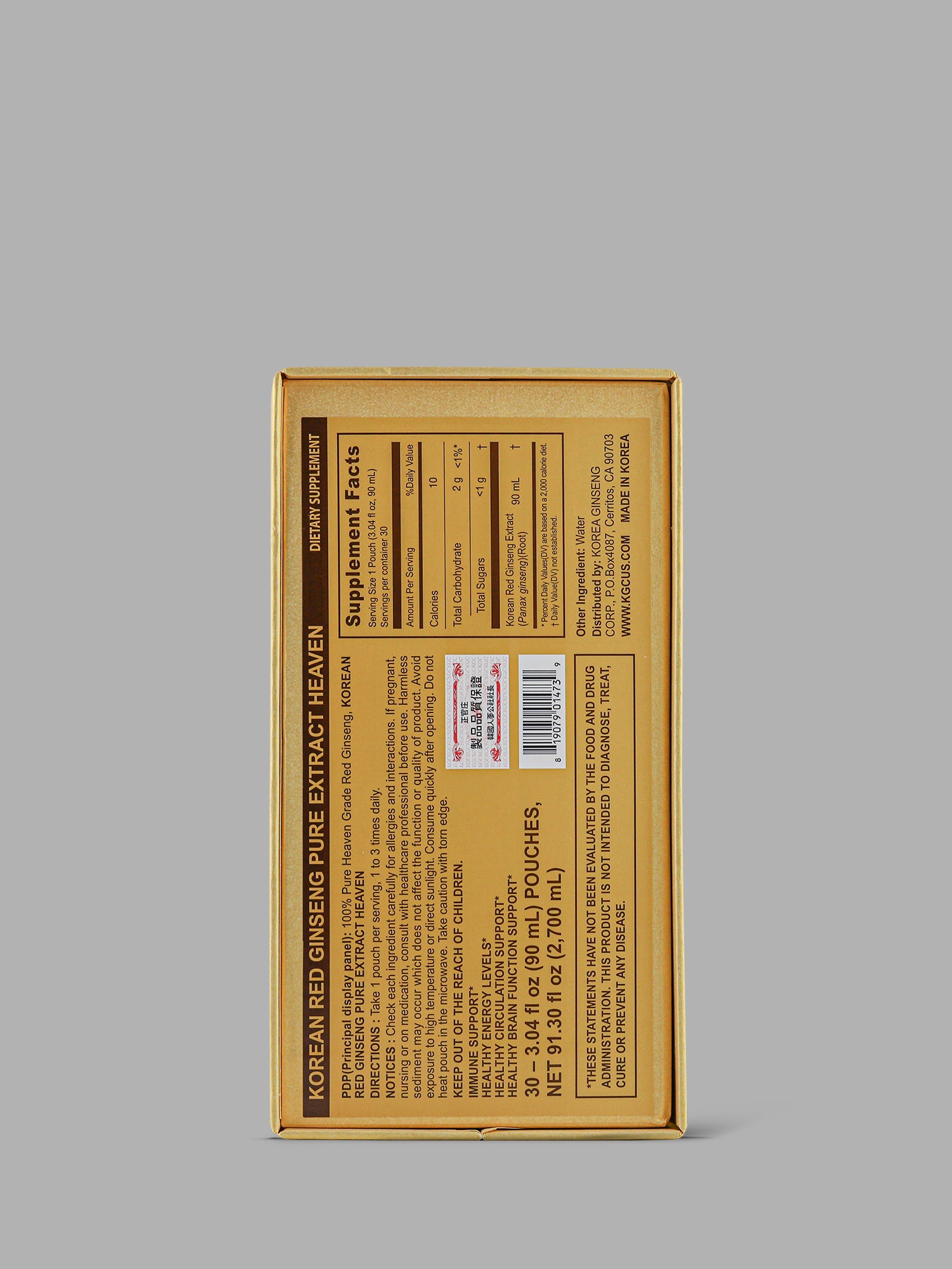 O Extrato Puro Heaven Grade é 100% puro Ginseng Vermelho Coreano em seu melhor estado não adulterado. É fabricado artesanalmente com nada além de Ginseng Vermelho Coreano e água, protegendo os ingredientes da raiz do Ginseng Vermelho.