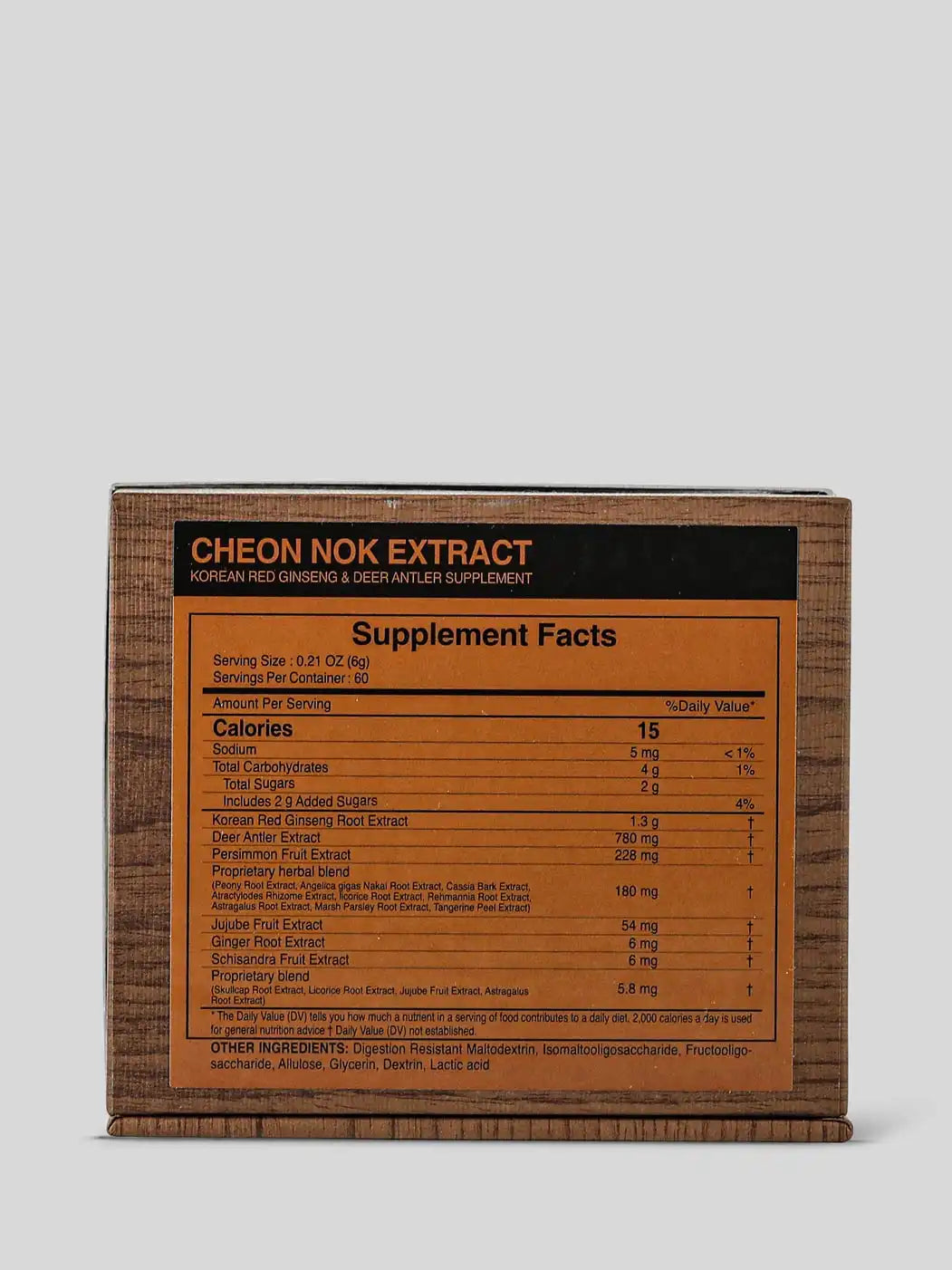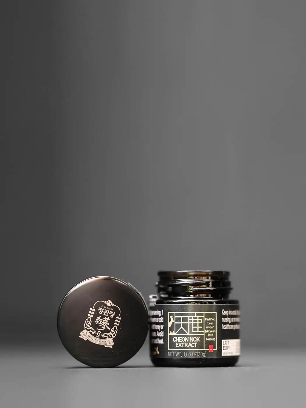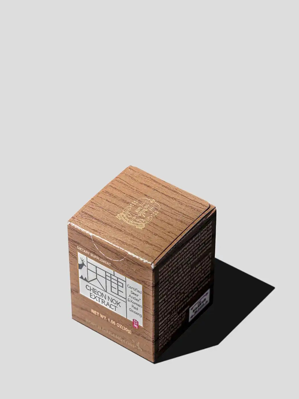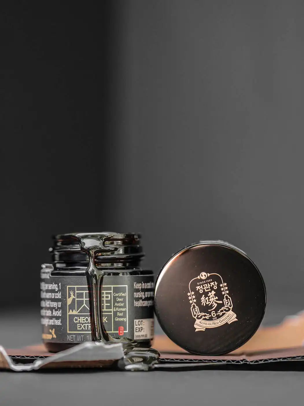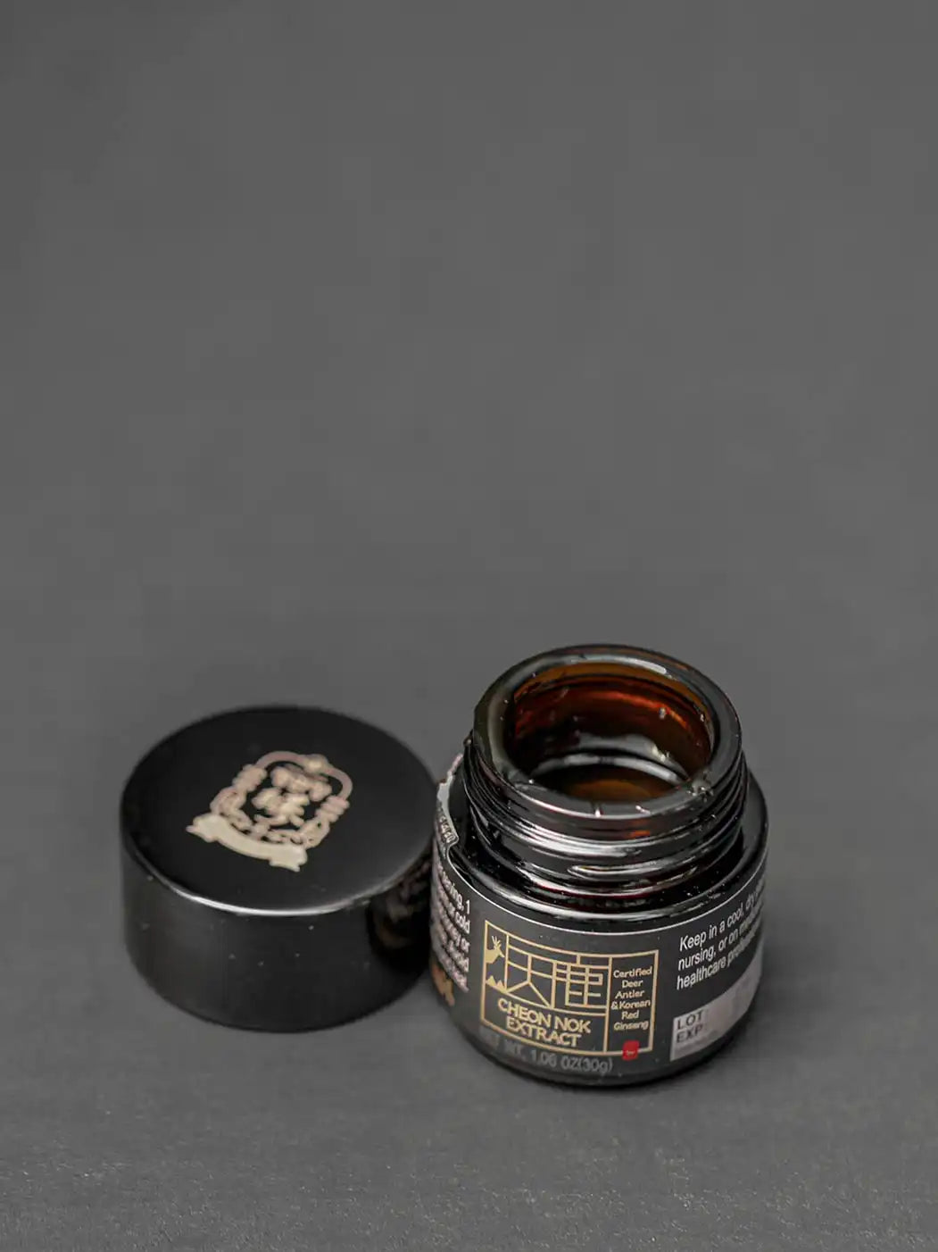 Rejuvenesça o seu corpo com o extrato muito especial de veludo de chifre de veado e ginseng vermelho. O Extrato Premium de Cheon Nok é feito com extrato certificado de veludo de chifre de veado e extrato de ginseng vermelho coreano, os tipos de medicamentos mais populares do mundo! Esses extratos ajudam com energia, sustentam uma vida saudável e também apoiam a funcionalidade mental. Agora você pode colher os benefícios desses suplementos naturais.