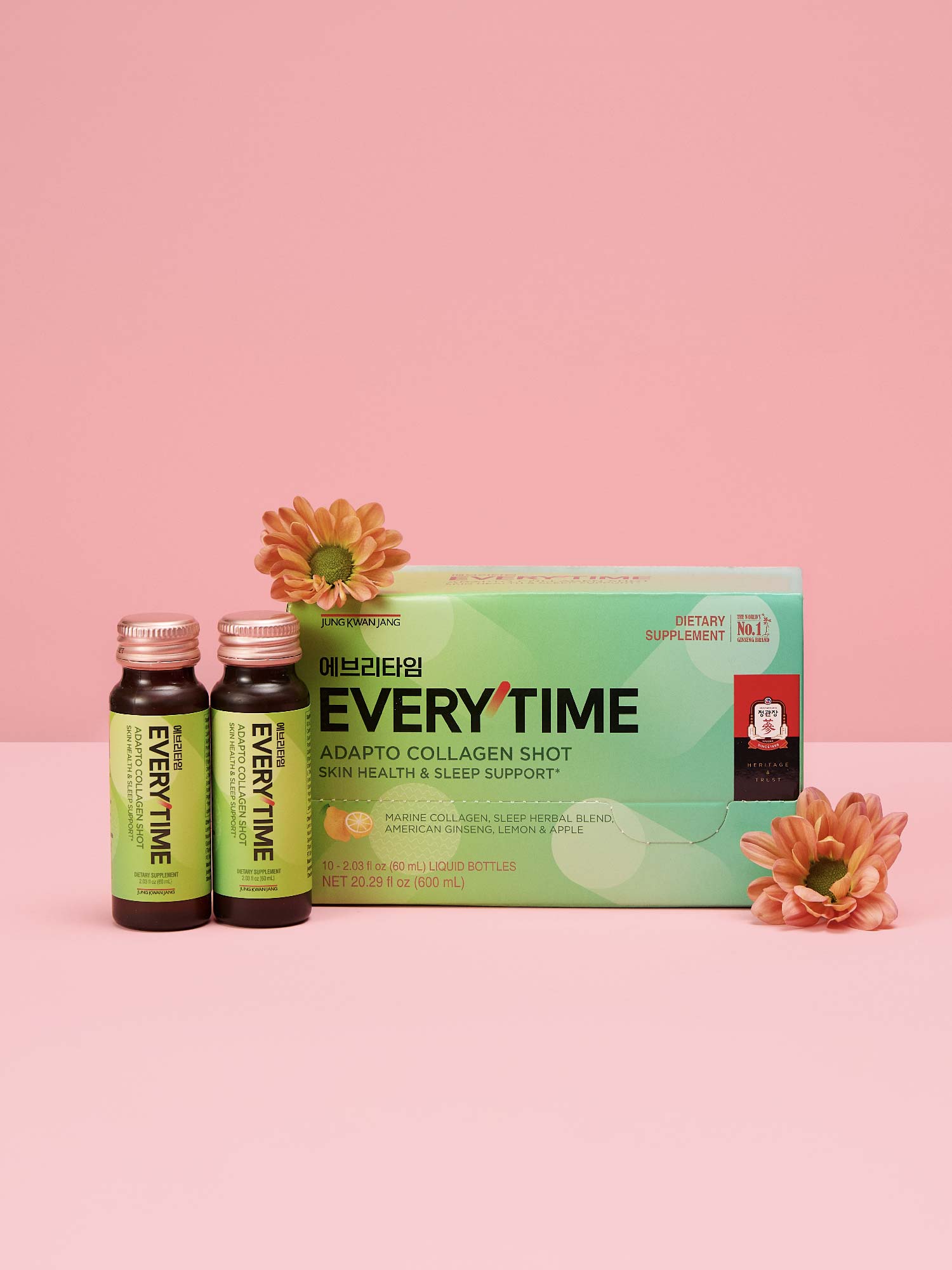 Enjoy restful nights and awaken your skin’s natural radiance with Everytime Adapto Collagen: Skin Health & Sleep Support!* This is a gluten-free, GMO-free, and caffeine-free supplement designed to support the skin barrier, boost collagen density, enhance skin brightness and reduce wrinkle appearance & skin elasticity all while promoting deep, rejuvenating sleep.* Feel revitalized with a blend of American Ginseng & Marine Collagen.