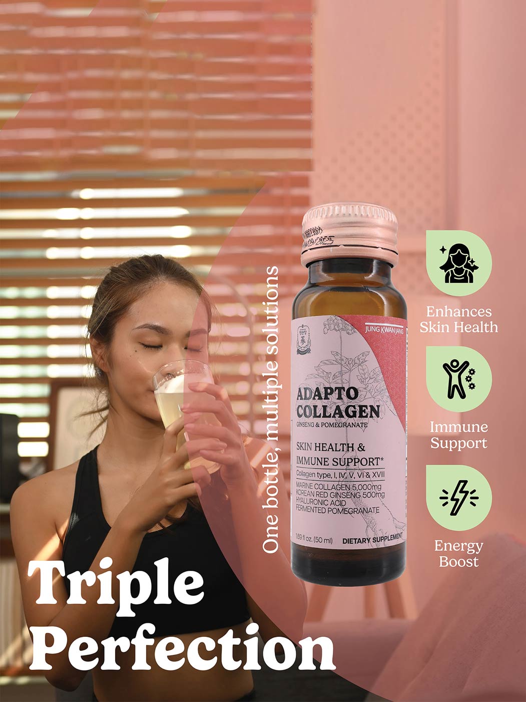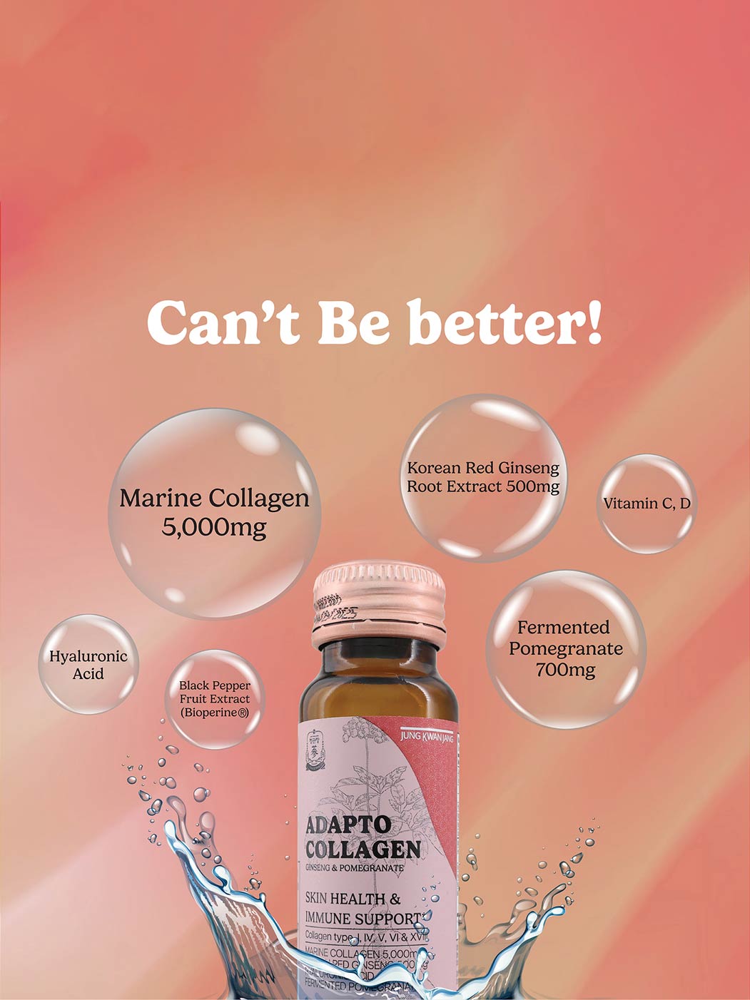 通过我们的Adapto Collagen shot for皮肤和免疫健康,改变您的日常生活。拥抱更健康、更年轻的外观,同时支持整体健康。今天就试试,发现它对您的生活可以产生的积极影响!