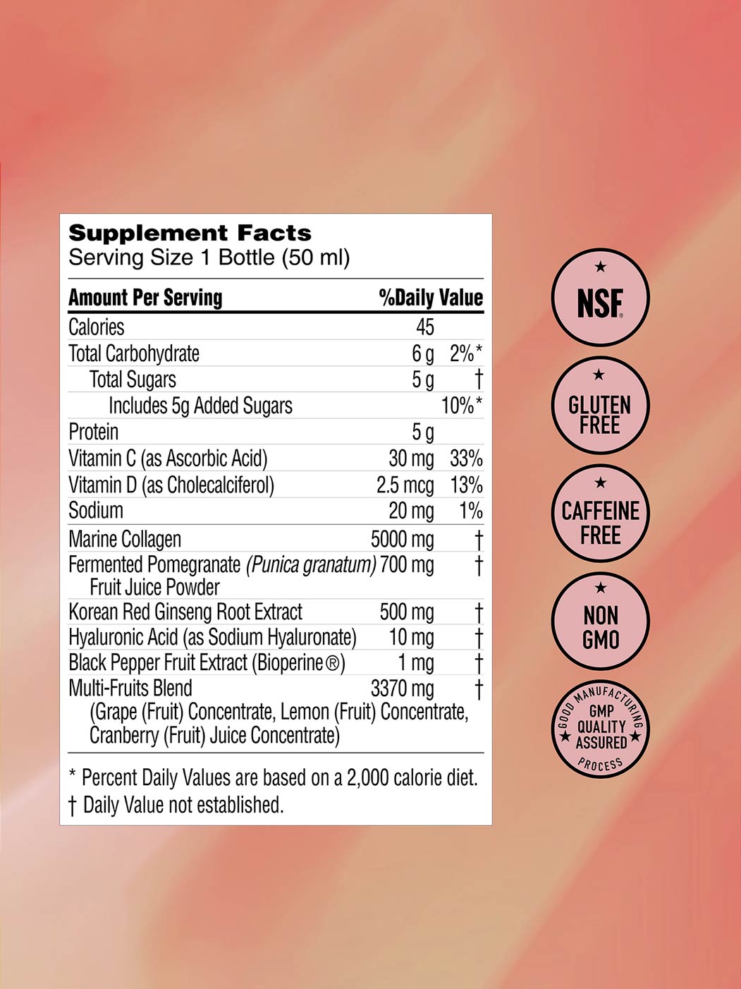 体验我们科学证明的成分所带来的不同,每瓶中都蕴含三种功能性益处。改善您的皮肤健康,支持您的免疫系统,享受我们产品为您的日常生活带来的便利和美味。