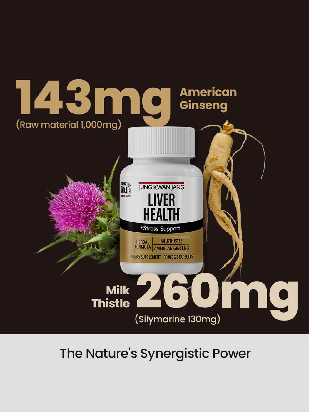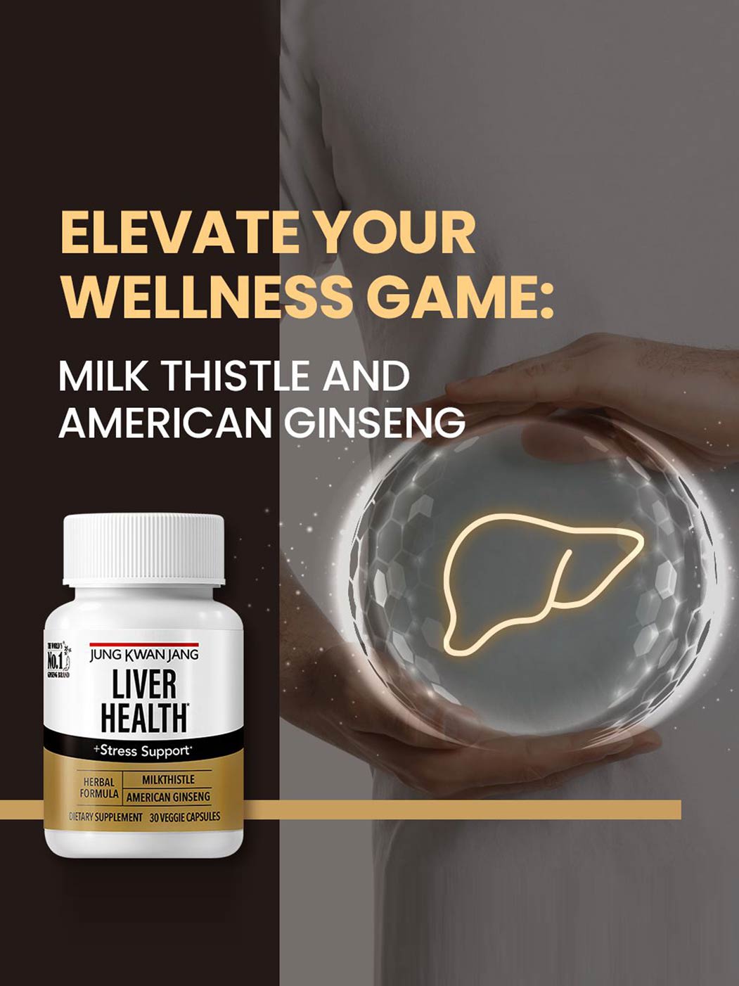 支持您的肝脏健康,帮助消化,促进肌肉恢复,增强免疫系统,并提供关节支持,尽在 JungKwanJang Liver。体验焕发活力的肝脏、更健康的消化、更快的恢复以及通过奶蓟和美国人参带来的整体健康益处。