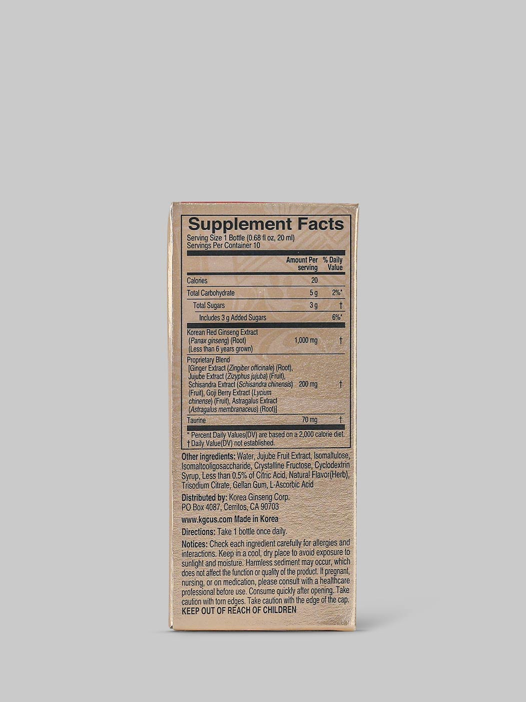 这种功效强大的饮料由优质韩国红参以及精选的健康天然草药、维生素和矿物质精心调制而成。这些有效成分的组合可协同作用,支持疲劳恢复并促进整体健康。